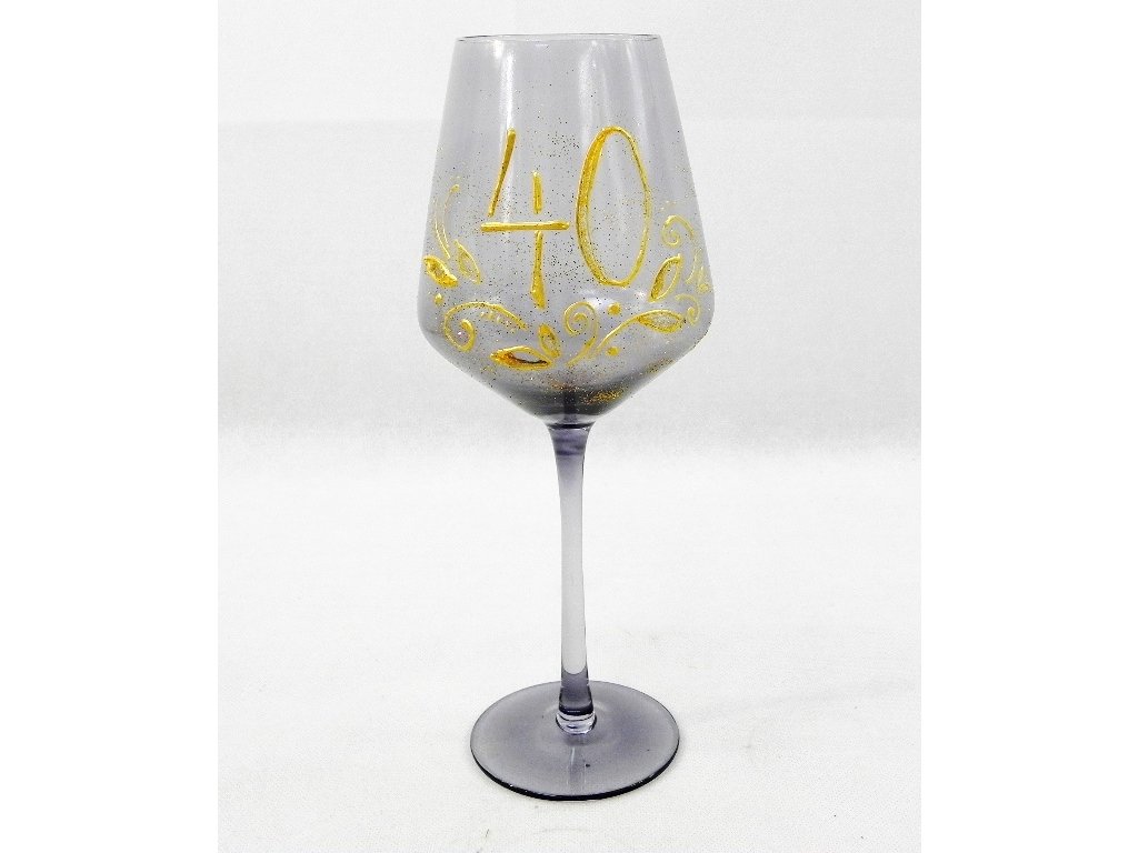 Doprajte oslávencovi dar, ktorý zanechá dojem! Tento nádherný ručne maľovaný výročný pohár v elegantnej sivej farbe je originálnym a štýlovým spôsobom, ako osláviť významné životné jubileum. Trblietavý dekor so zlatým odleskom a elegantnou číslicou „40“ dodáva poháru sviatočný a luxusný vzhľad.