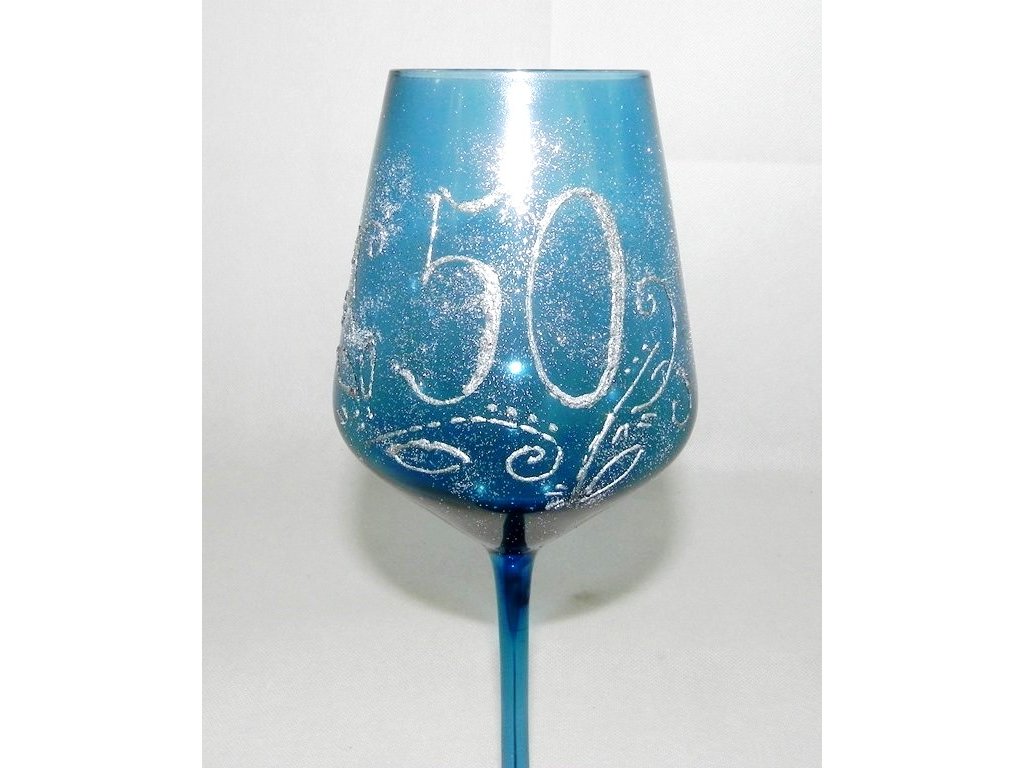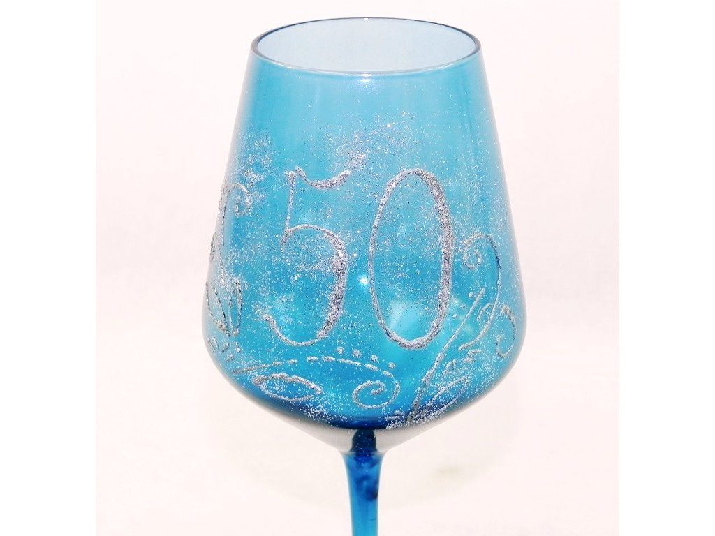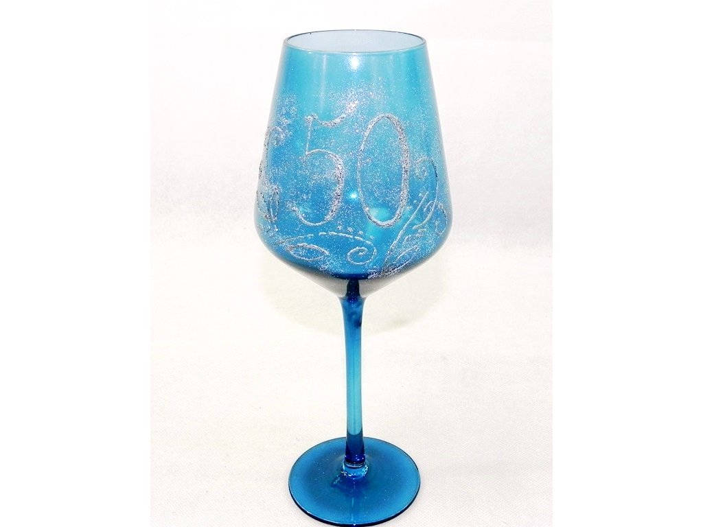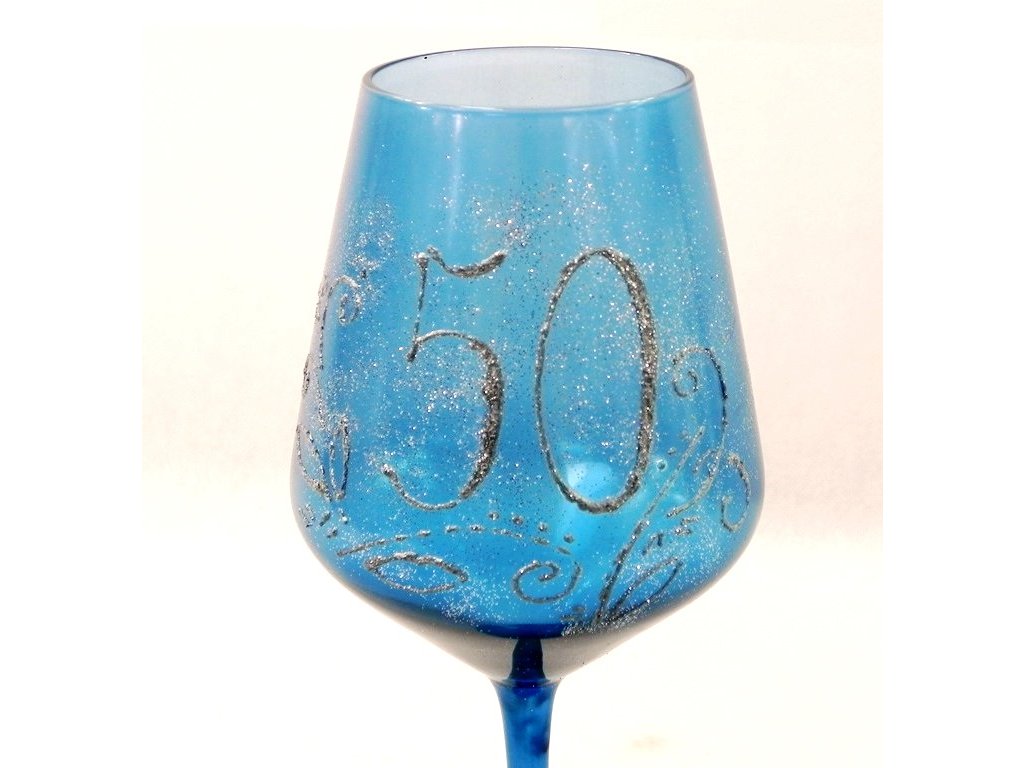 Doprajte oslávencovi dar, ktorý zanechá dojem! Tento nádherný ručne maľovaný výročný pohár v žiarivej modrej farbe je originálnym a štýlovým spôsobom, ako osláviť významné životné jubileum. Trblietavý dekor so strieborným odleskom a elegantnou číslicou „50“ dodáva poháru sviatočný a luxusný vzhľad.