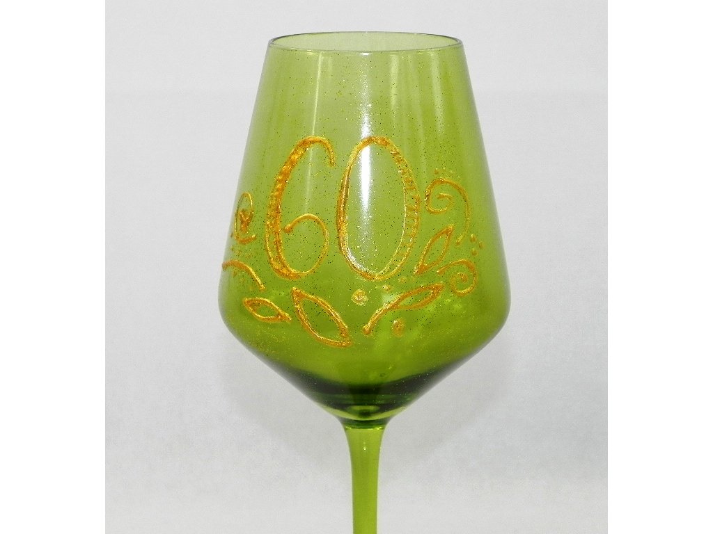 Doprajte oslávencovi dar, ktorý zanechá dojem! Tento nádherný ručne maľovaný výročný pohár v žiarivej zelenej farbe je originálnym a štýlovým spôsobom, ako osláviť významné životné jubileum. Trblietavý dekor so zlatým odleskom a elegantnou číslicou „60“ dodáva poháru sviatočný a luxusný vzhľad.