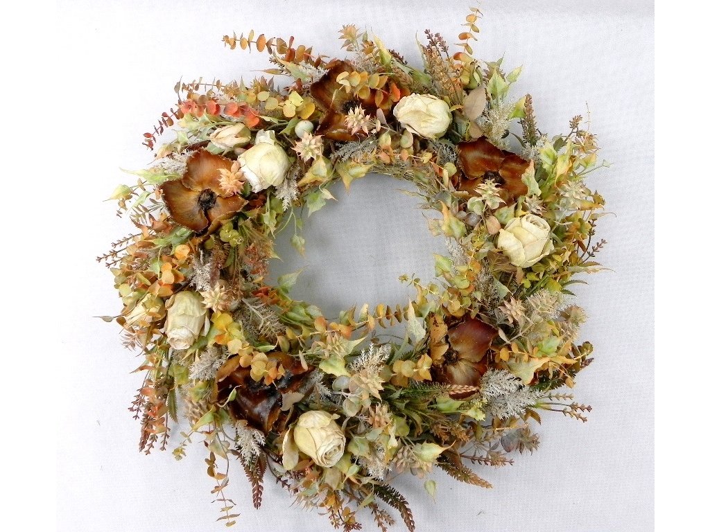 Už s letným tónom, plný sušených kvetov a plodov s doplnkami stabilizovanej zelene.