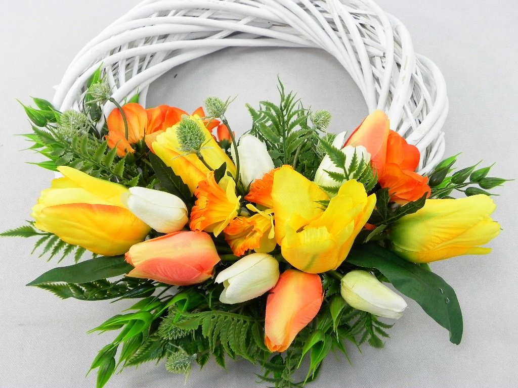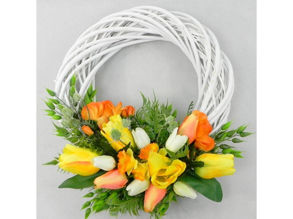 Na kvalitnom ratanovom venci, priemer 40 cm.