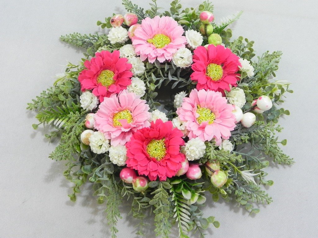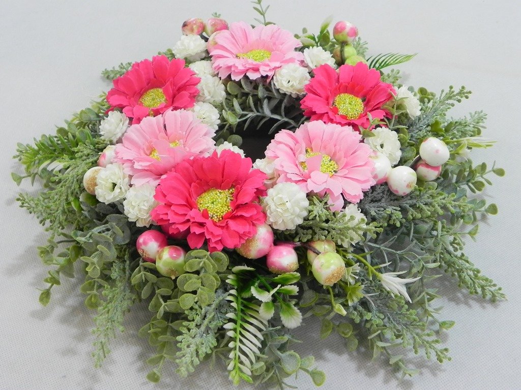 Hodvábne umelé gerbery s mini karafiátmi a bobuľkami.