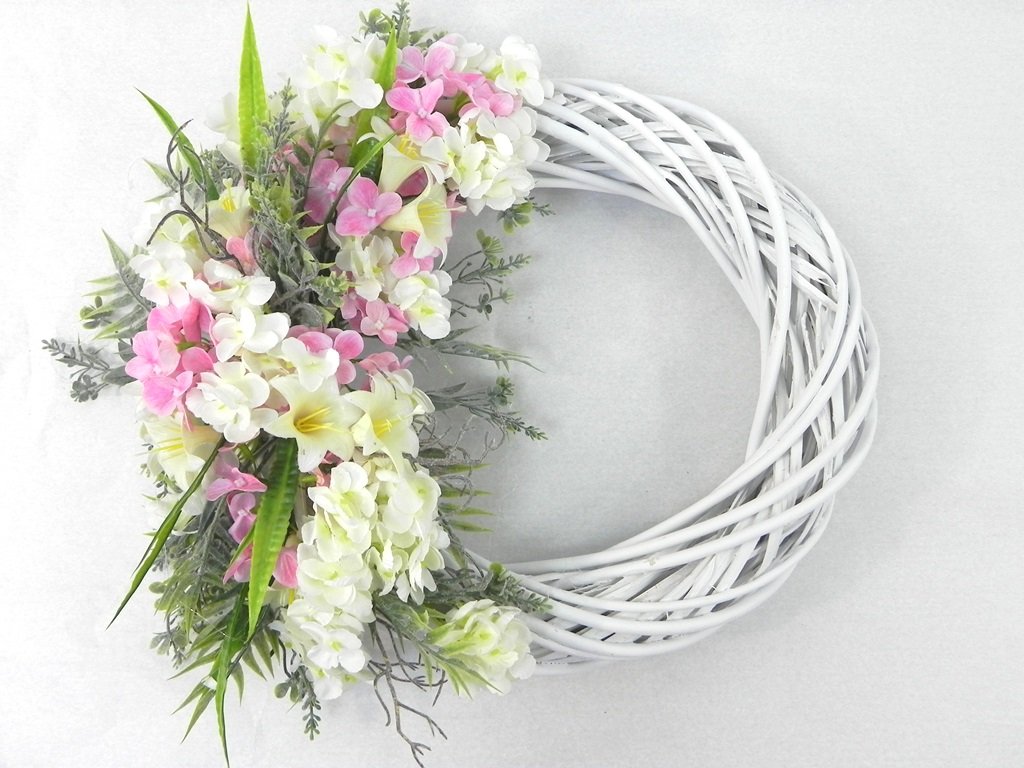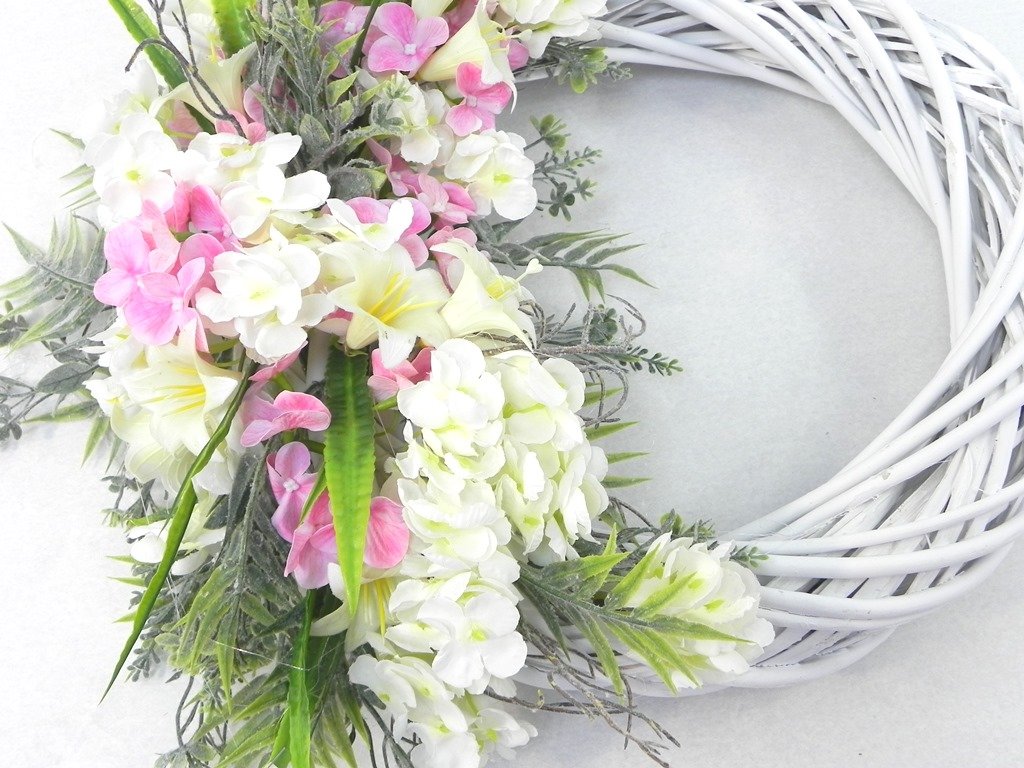 Pogumovaná hortenzia s textilnou hortenziou a doplnkovou zeleňou.