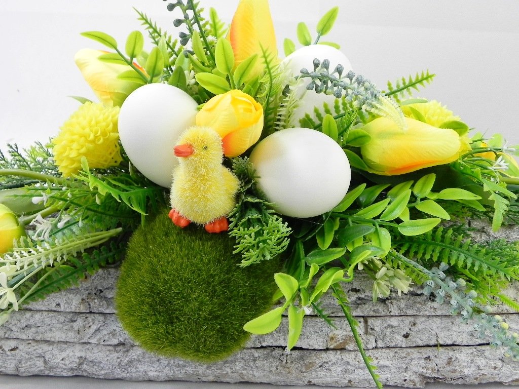Privítajte jar štýlovo! Tento krásny jarný aranžmán v sebe spája sviežosť tulipánov, jemnosť konvaliniek a romantické detaily ako malé húsatko a vajíčka 🥚.