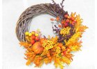 Jesenný a Dušičkový sortiment - umelé dyne, jesenné listy, jesenné postavičky, dušičkové aranžmány, chryzantémy, ikebany, sviečky, kahance, svietniky, hrobová výzdoba.