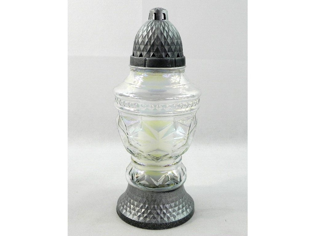Sklenený kahanec. 29 cm. Spolu s vkladom, hmotnosť vosku 80g