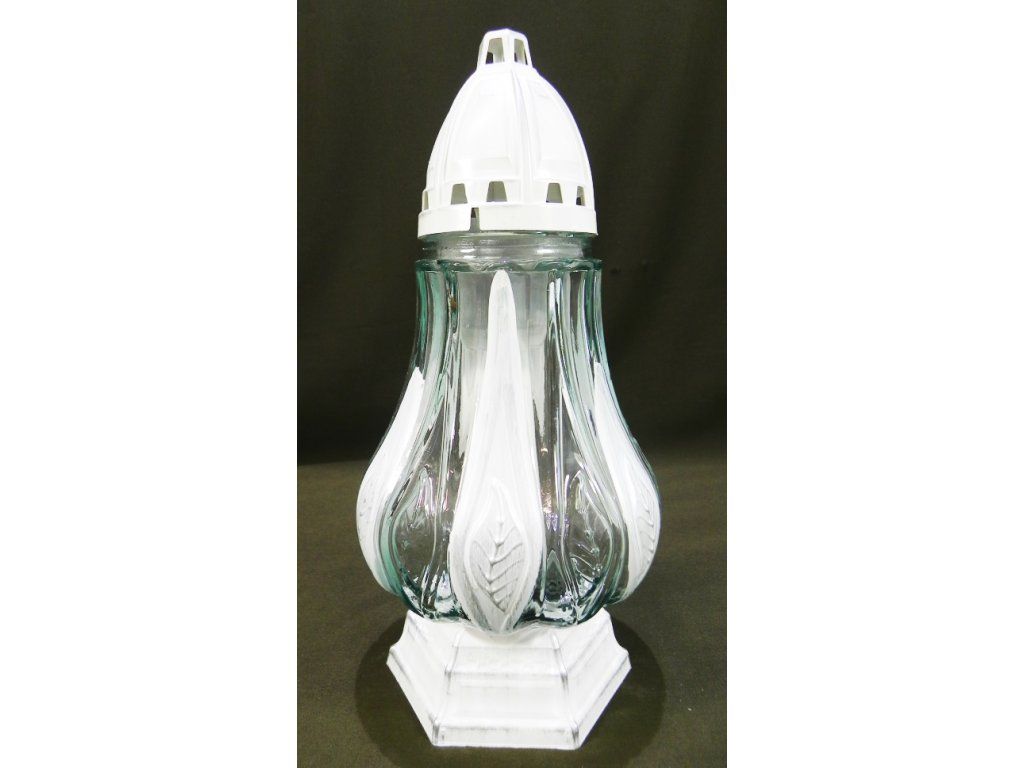 Sklenený kahanec s listami. Výška: 31 cm. Predáva sa spolu s náplňou.
