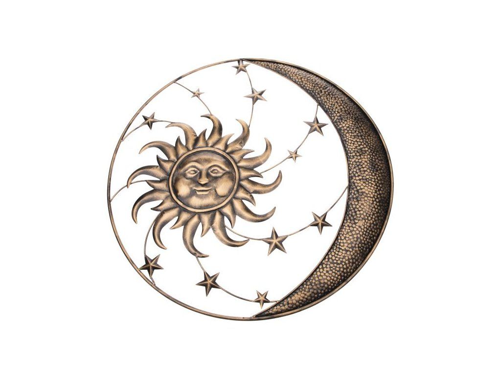 Táto originálna kovová dekorácia s motívom slnka, mesiaca a hviezd vnesie do vášho exteriéru či interiéru nádych mystiky a nadčasovej elegancie. Detailné spracovanie s patinou v bronzovom odtieni vytvára pôsobivý priestorový efekt, ktorý premení každú prázdnu stenu na umelecké dielo. Vďaka svojej odolnej konštrukcii a harmonickému dizajnu je ideálnou voľbou pre skrášlenie terasy, záhrady alebo obývacej izby, kde navodí atmosféru pokoja a nekonečného vesmíru.