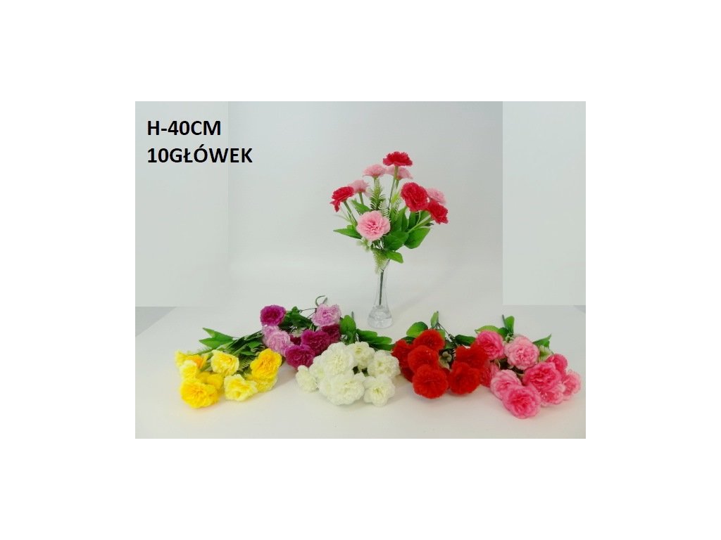 Umelá kytička karafiátov s doplnkovou zeleňou.