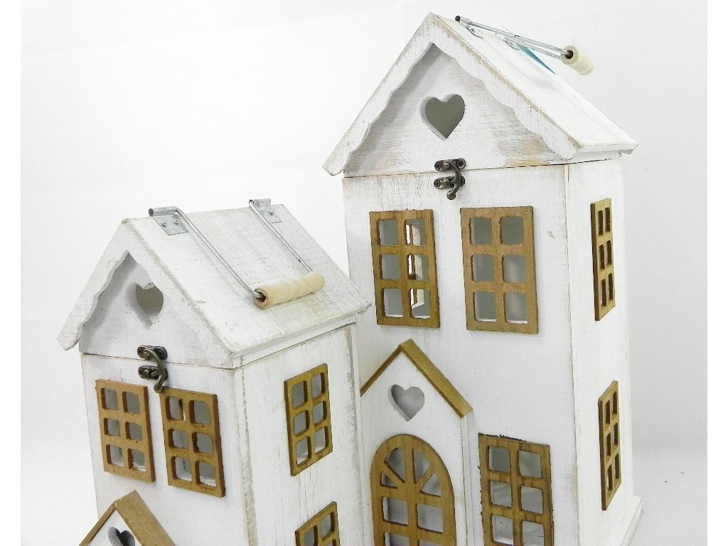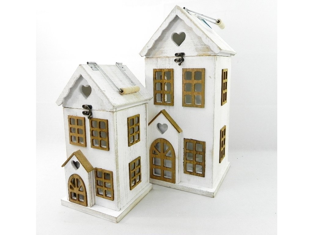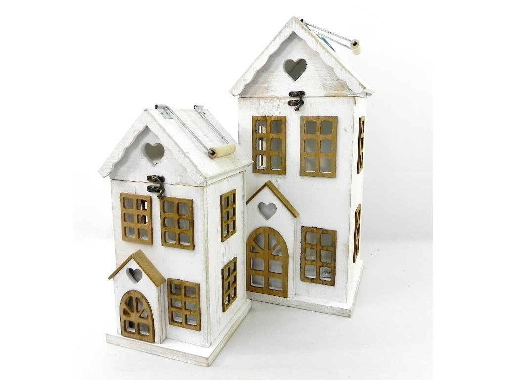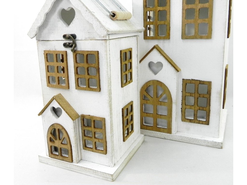 Nádherné drevené lampáše - domčeky s okienkami a dverami s výrezmi.