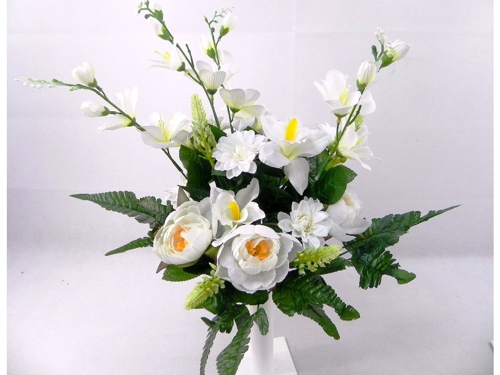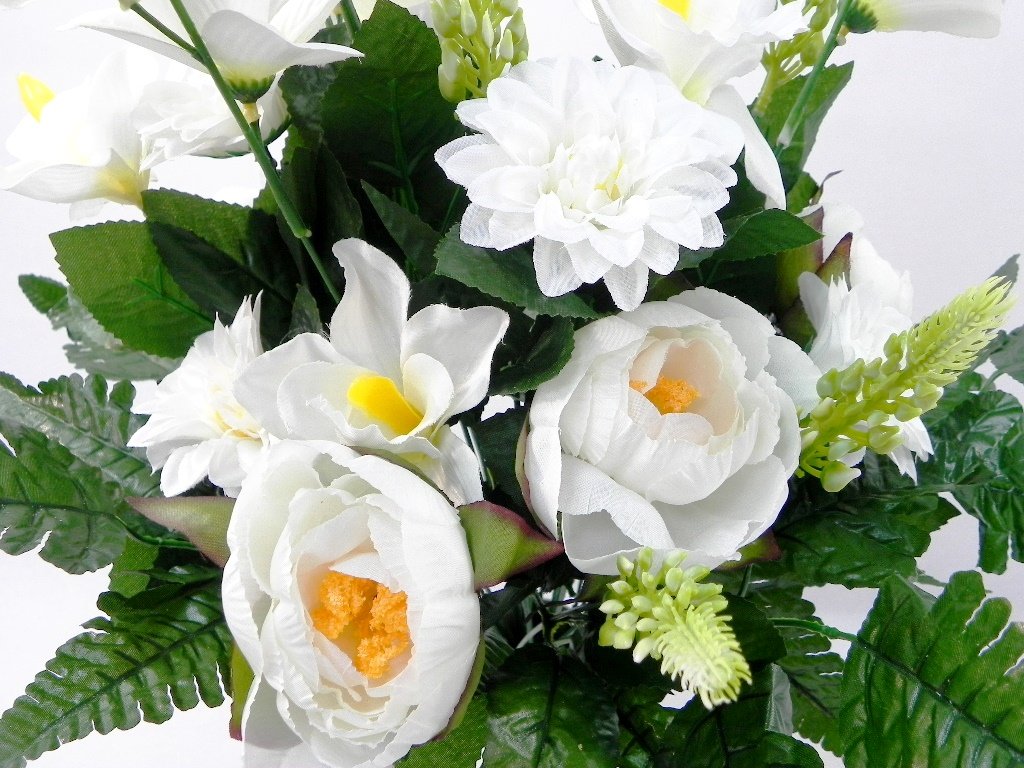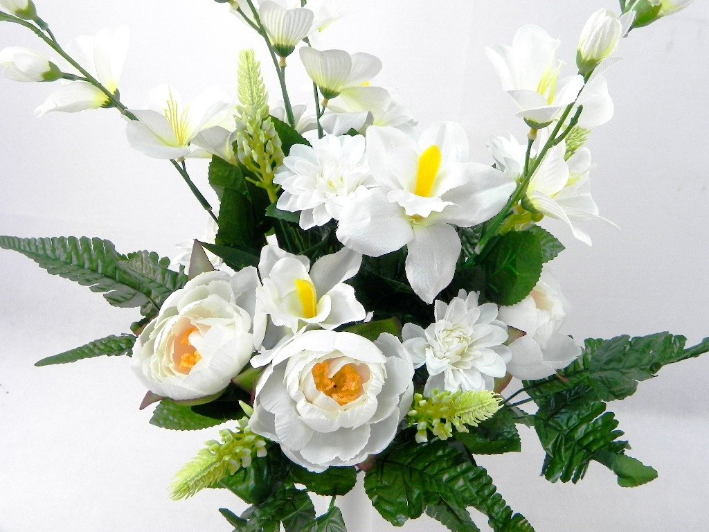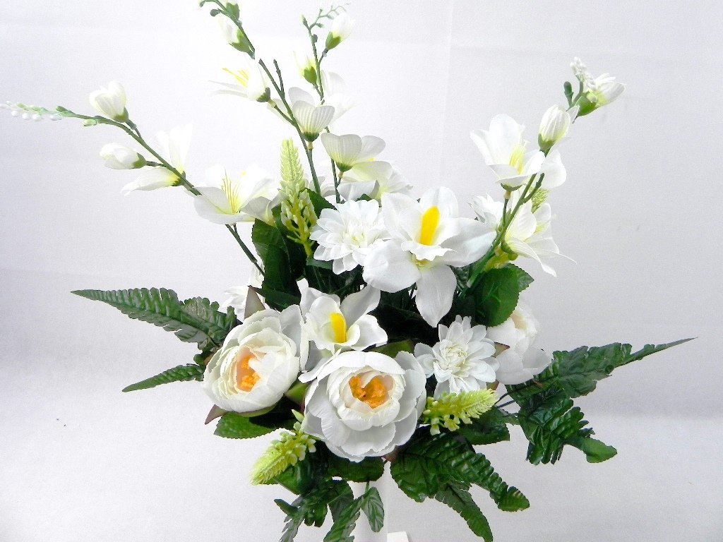 Kytica umelých kvetov s gladiolami, orchideami a pivóniami.