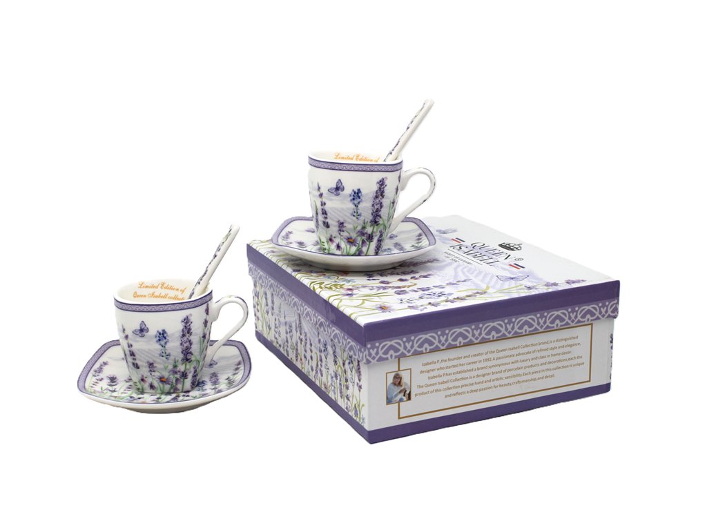 2 šálky. 2 tanieriky, 2 lyžičky, darčeková krabička.