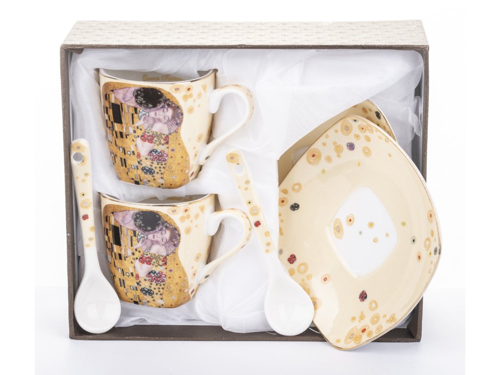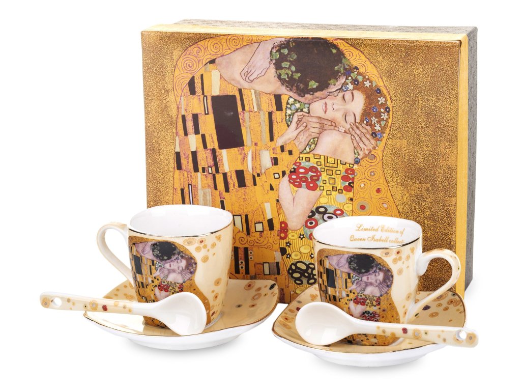 Táto nádherná porcelánová súprava je ako umelecké dielo, z ktorého dýcha romantika a elegancia. Motív od akademického maliara G. Klimta je umocnený na každom kúsku tejto súpravy, ktorá sa môže stať ozdobou každej kaviarne. Dve šálky, dve tanieriky a dve lyžičky v darčekovom balení sú ako stvorené pre tých, ktorí radi trávia chvíle pri káve alebo čaji v spoločnosti svojej druhej polovičky. Objem každej šálky približne 80 ml umožňuje dostať sa do hlbín romantických rozhovorov pri čajovej ceremonii a vychutnať si každý dúšok tejto lahodnej nápojovej pochúťky. Táto porcelánová súprava je pre každého, kto chce ukázať svojmu milovanému, ako veľmi si ho váži a aký dôležitý je pre neho každý moment strávený spolu.