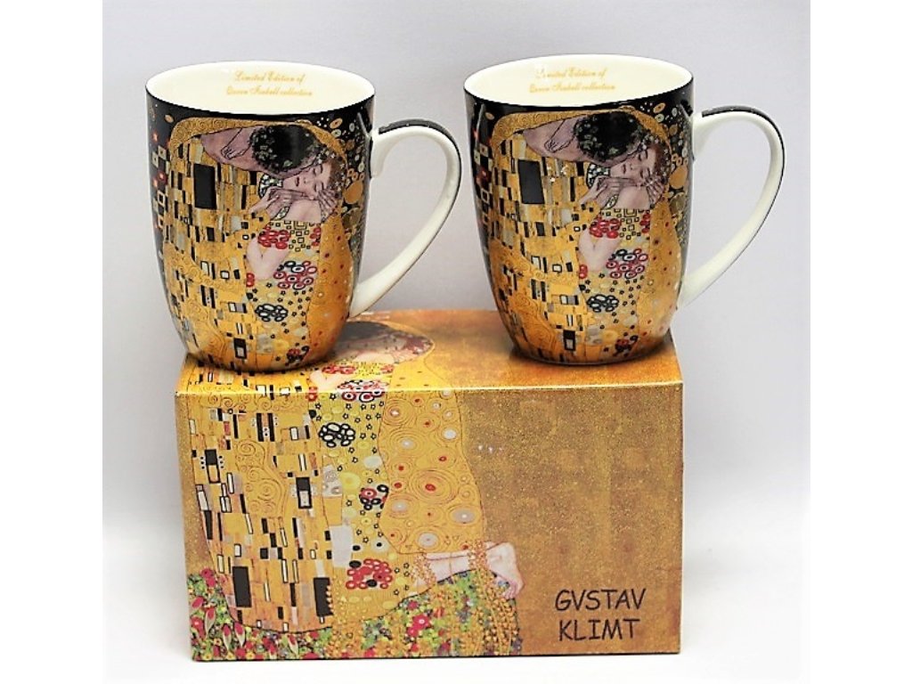 Nádherná porcelánová súprava od ak. maliara G. Klimta - KISS. 2 šálky v darčekovom balení.