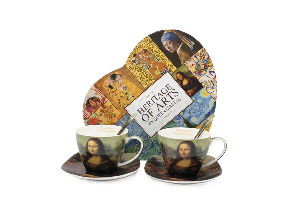 Nádherná porcelánová súprava od ak. maliara G. Klimta - Mona Lisa. 2 šálky, 2 lyžičky s lyžičkami v darčekovom balení.