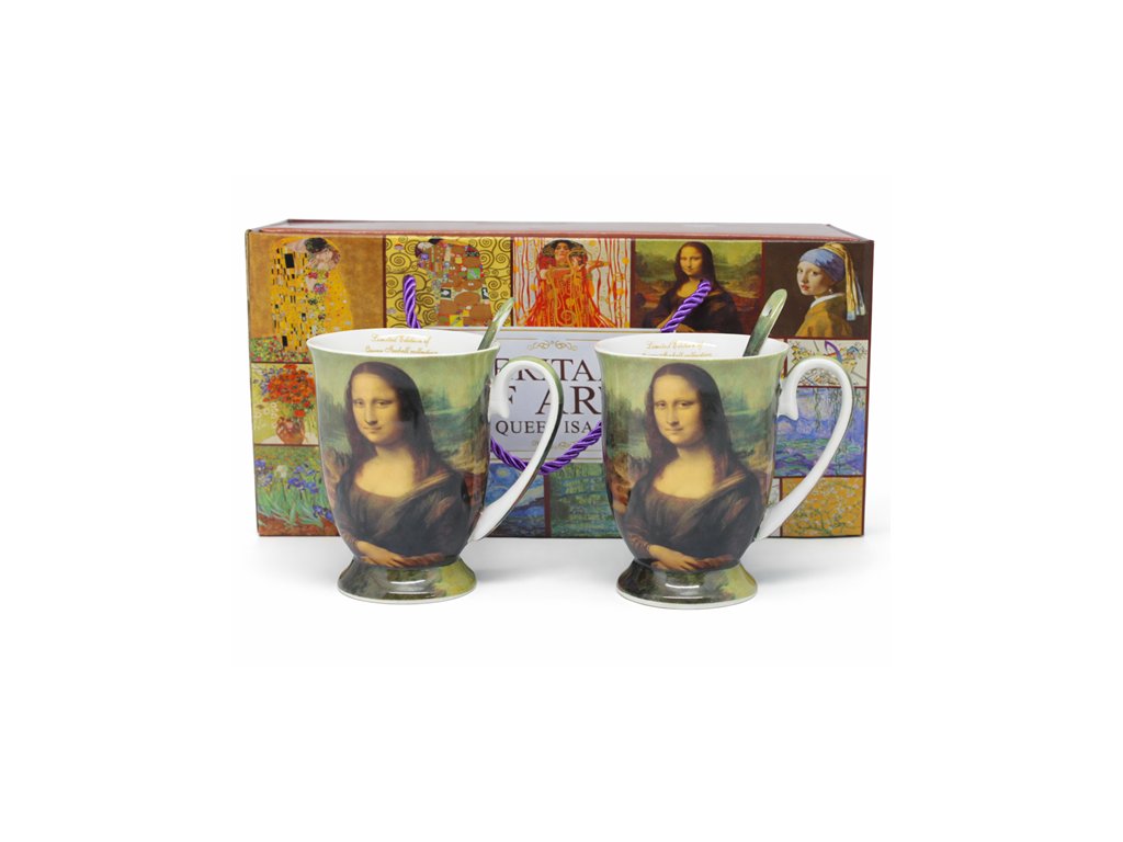 Nádherná porcelánová súprava od ak. maliara G. Klimta - Mona Lisa. 2 šálky s lyžičkami v darčekovom balení.