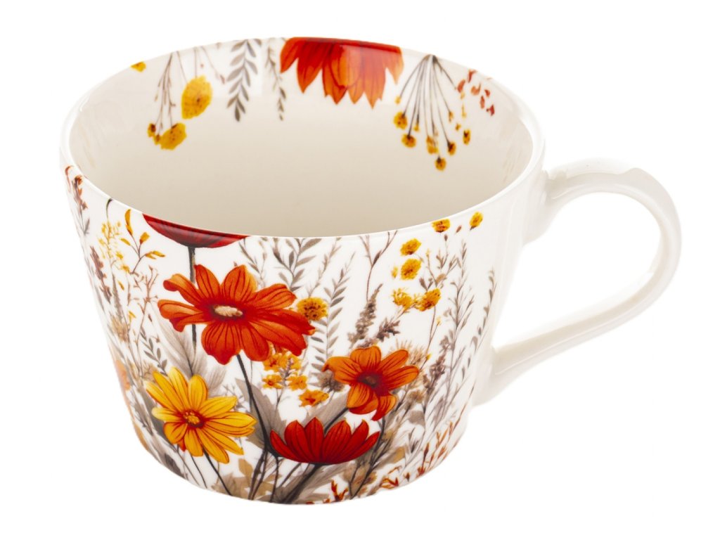 Nádherný hrnček s motívom poľných kvetov v darčekovej krabičke.