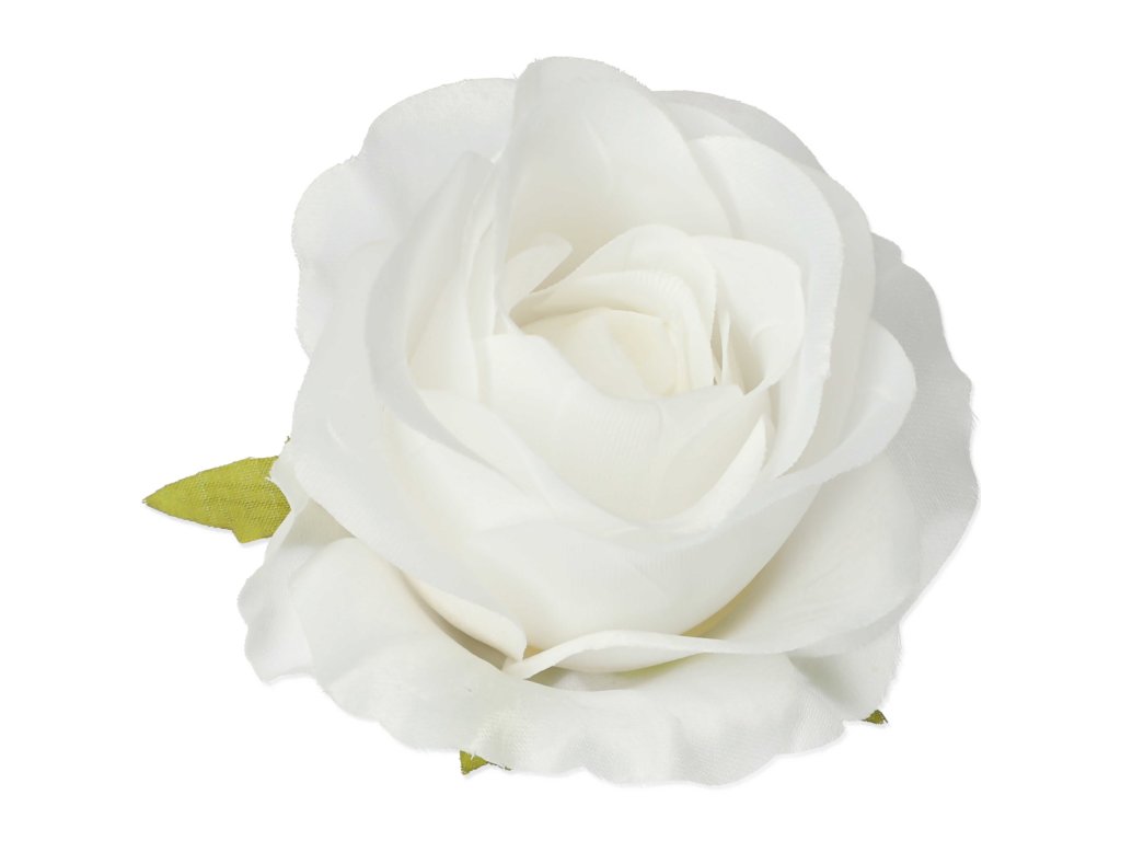 Krásna vencovka - ruža. Studená biela farba, kvalitné prevedenie. Hustý kvet, priemer 8 cm, Výška 8 cm. So zelenými okvetnými lístkami v spodnej časti. cena za kus.