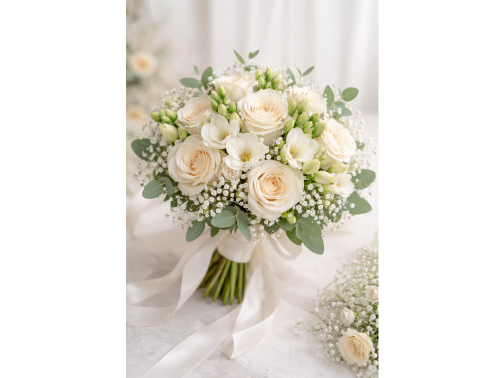 Svadobná kytica je stelesnením jemnosti, elegancie a prirodzenej krásy, ktorá dokonale podčiarkne výnimočnosť vášho veľkého dňa. Kombinácia bielych a pastelových tónov pôsobí romanticky, sviežo a nadčasovo zároveň. Každý detail je starostlivo vyskladaný tak, aby ladil s nevestou, šatami aj celkovou atmosférou svadby.