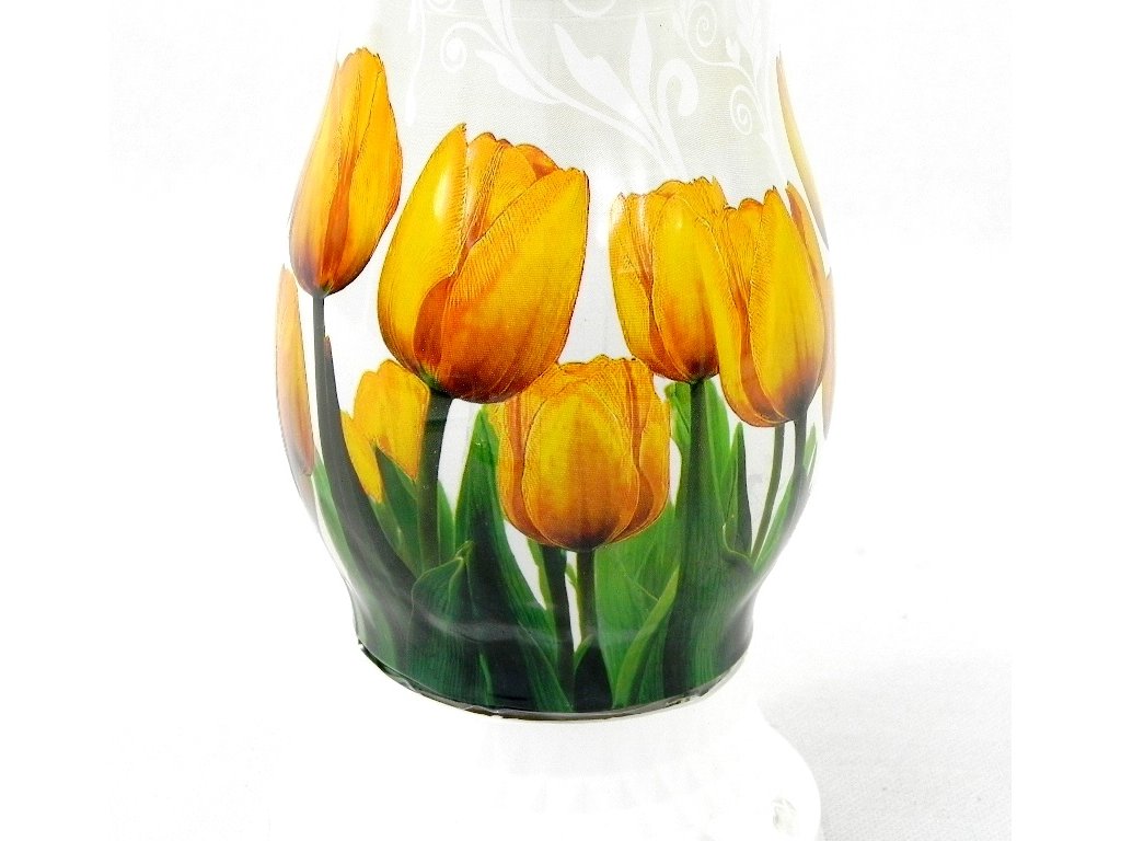 Sklenený kahanec s voskovou vyberateľnou časťou. Výška 28 cm. Hmotnosť vosku 120g.