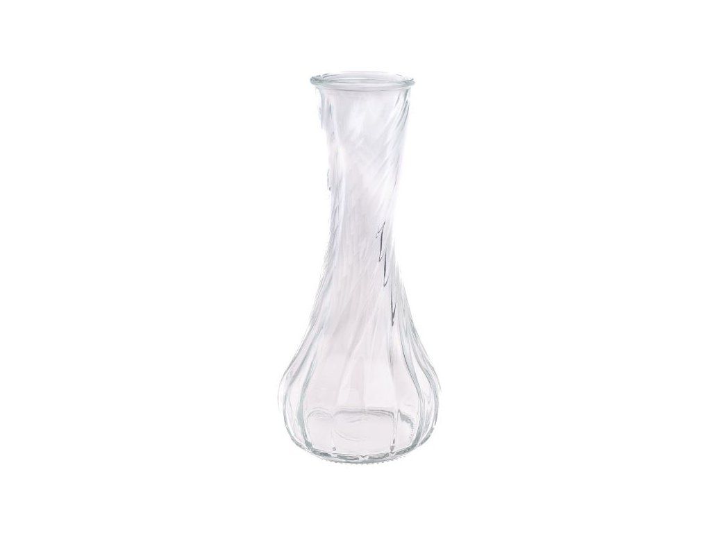 Táto elegantná sklenená váza s jemným špirálovým efektom je stelesnením čistoty a nadčasového štýlu. Jej štíhle, mierne zakrútené hrdlo plynule prechádza do širšej základne, čo jej dodáva vynikajúcu stabilitu a jedinečný vizuálny charakter. Je ideálnym doplnkom pre stredne vysoké kytice alebo jarné vetvičky, ktoré v čírom skle krásne vyniknú a vnesú do vášho interiéru pocit sviežosti a ľahkosti.
