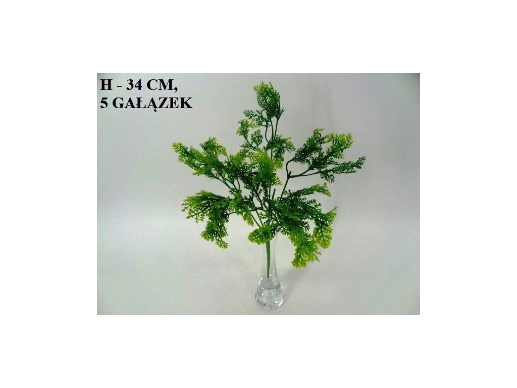 Táto kompaktná vetvička s výškou 34 cm ponúka mnoho husto rozvetvených ramien plných jemných zelených lístkov. Vďaka svojmu rozložitému tvaru a sýtej farbe s jemným svetlejším tieňovaním na koncoch pôsobí veľmi sviežo, akoby bola práve odtrhnutá zo záhrady. Je to univerzálny pomocník pre každú gazdinku – či už do samostatnej vázy, alebo ako zelený základ pre sezónne aranžmány.